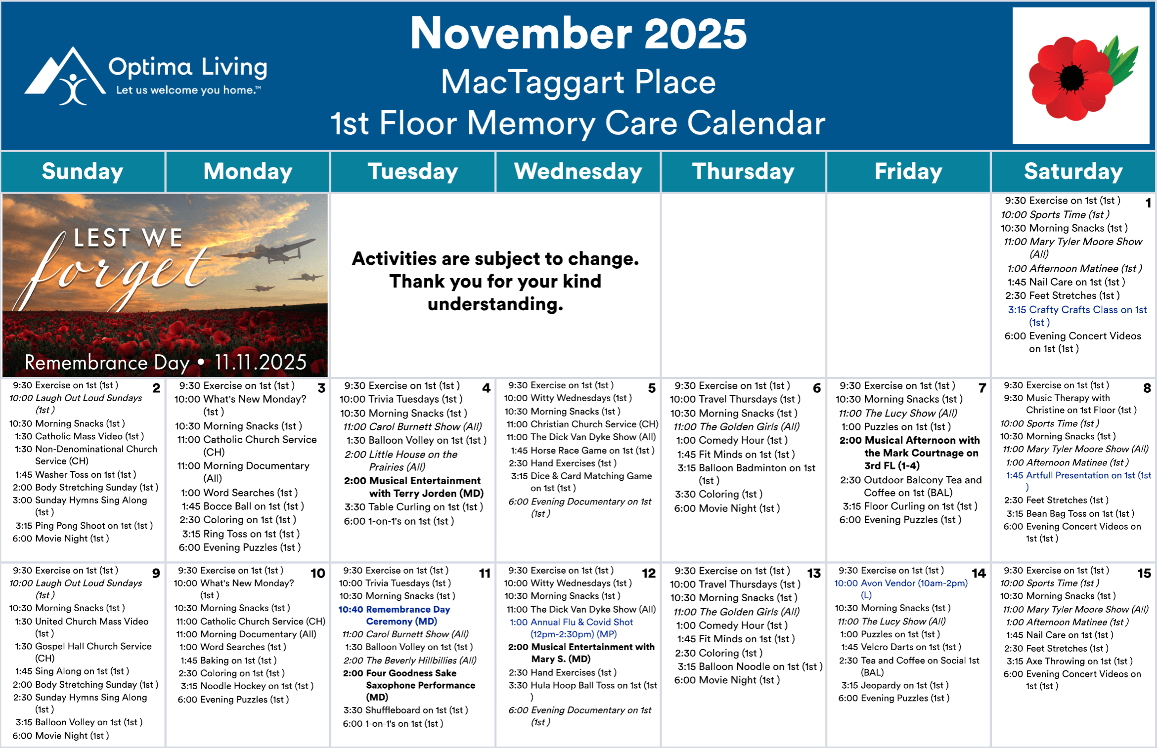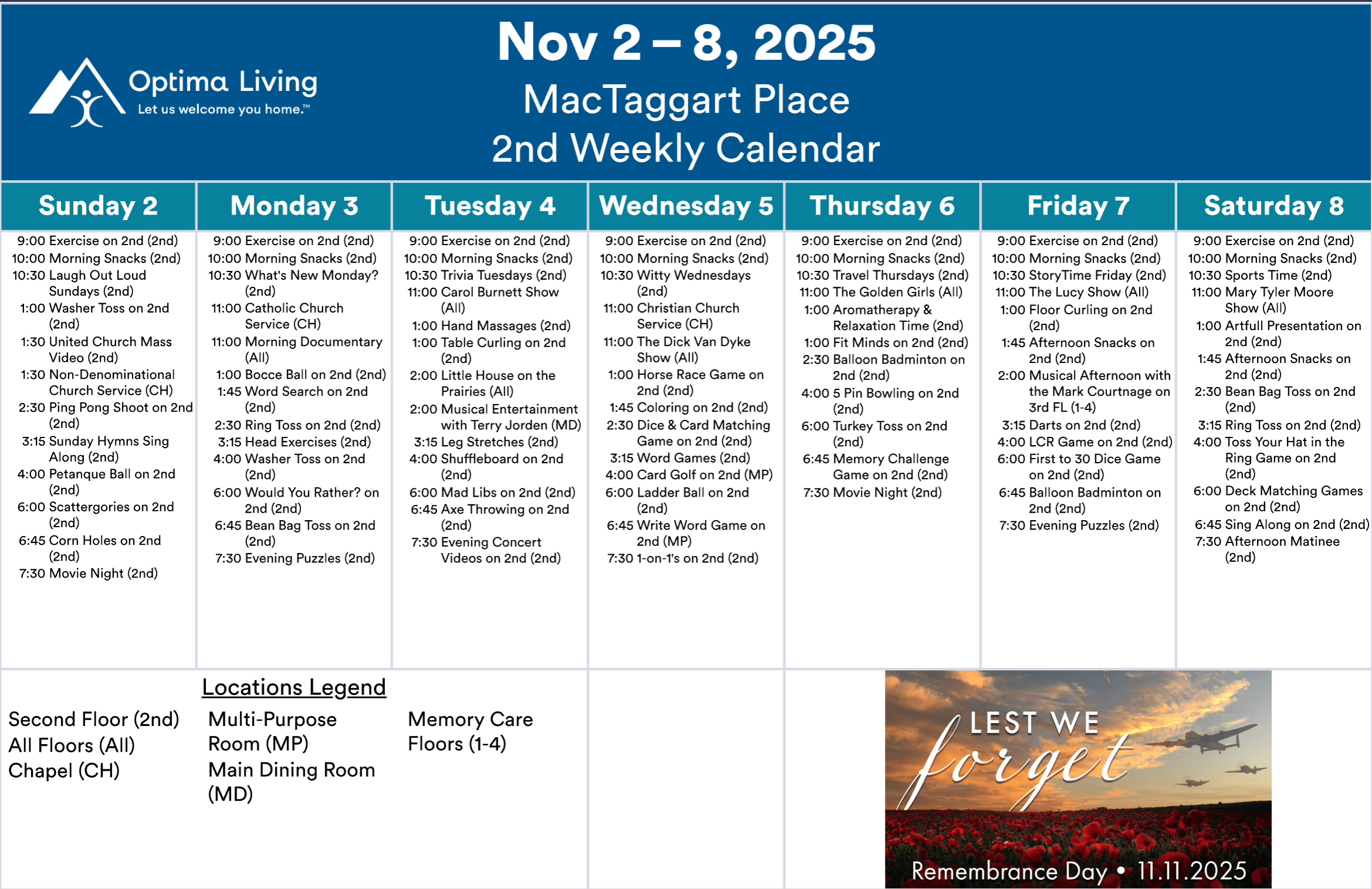 Stay up to date on all things happening at Mactaggart Place with our Monthly Newsletter